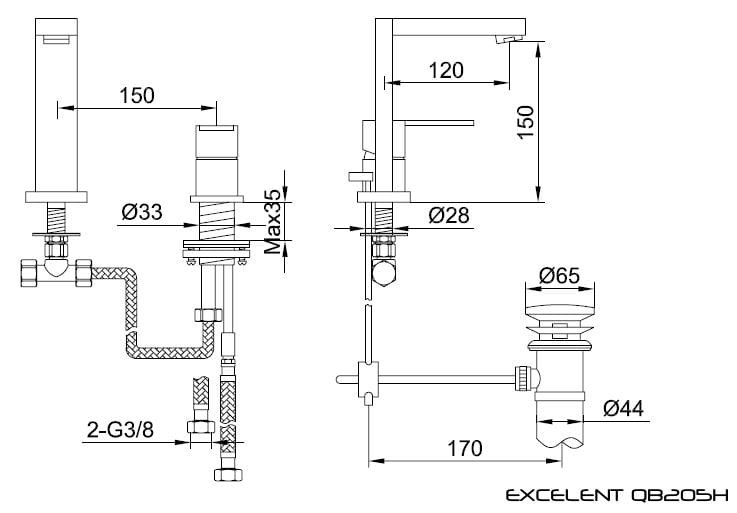 Kohlman Excelent bateria umywalkowa, 2-otworowa, chrom QB205H