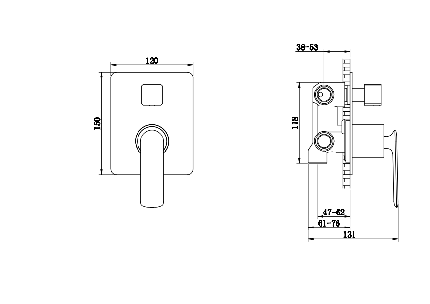 Bateria podtynkowa Kohlman Experience chrom- wymiary