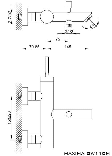 Kohlman MAXIMA bateria wannowo-prysznicowa, natynkowa, chrom QW110M