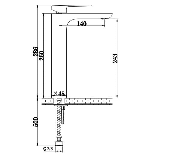 Wysoka bateria umywalkowa Kohlman Proxima - wymiary