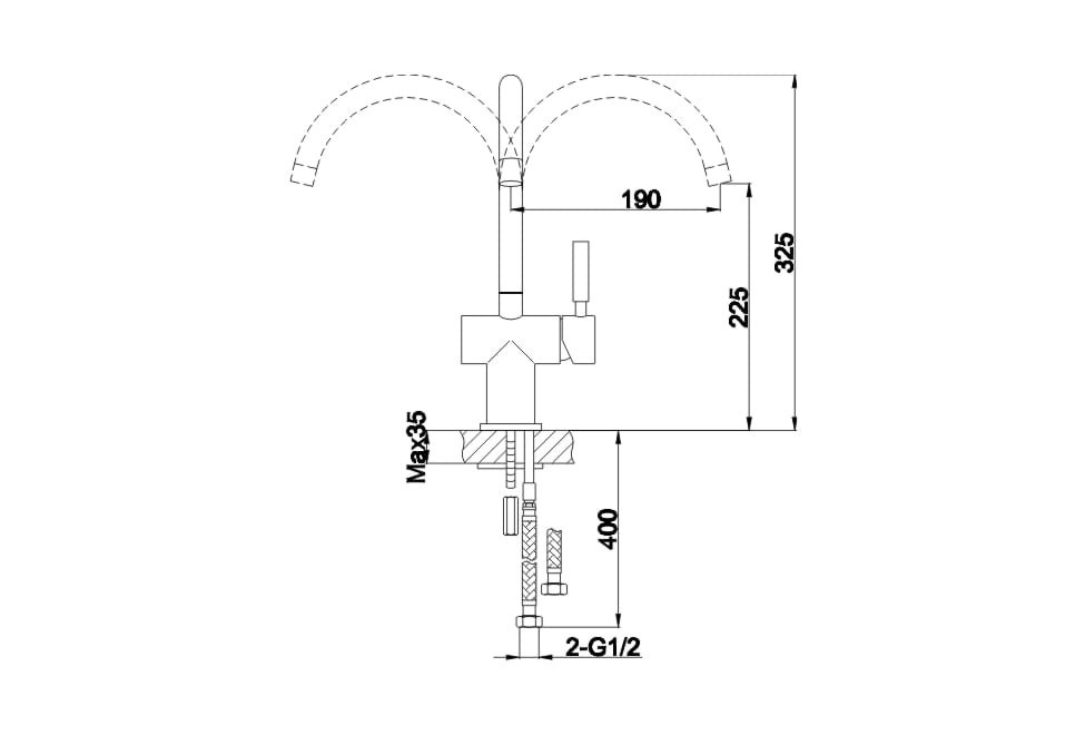 - obrotowa wylewka - 180 stopni,
