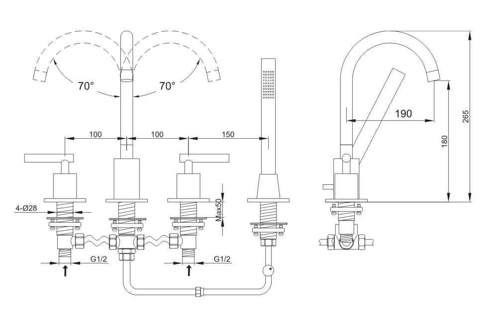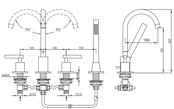 - obrotowa wylewka w zakresie 140 stopni