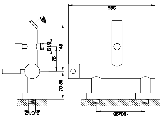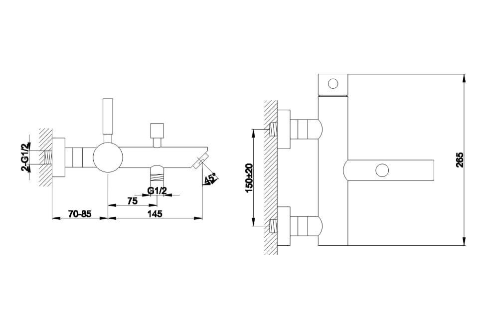 Bateria wannowa Kohlman Roxin ścienna - wymiary