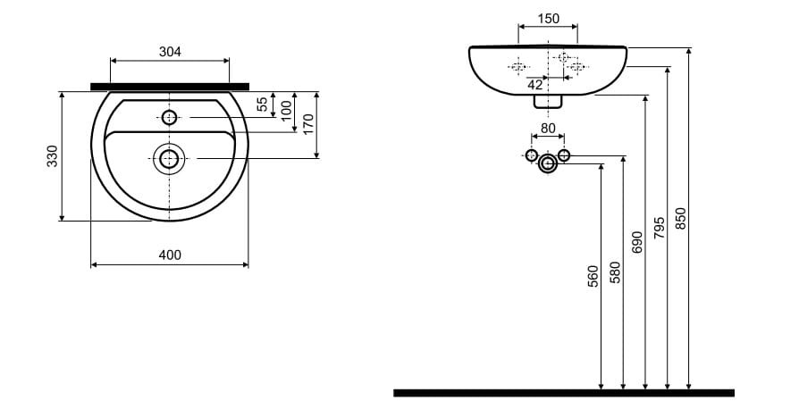 Koło REKORD umywalka 40x33 cm, z otworem i przelewem K92140000