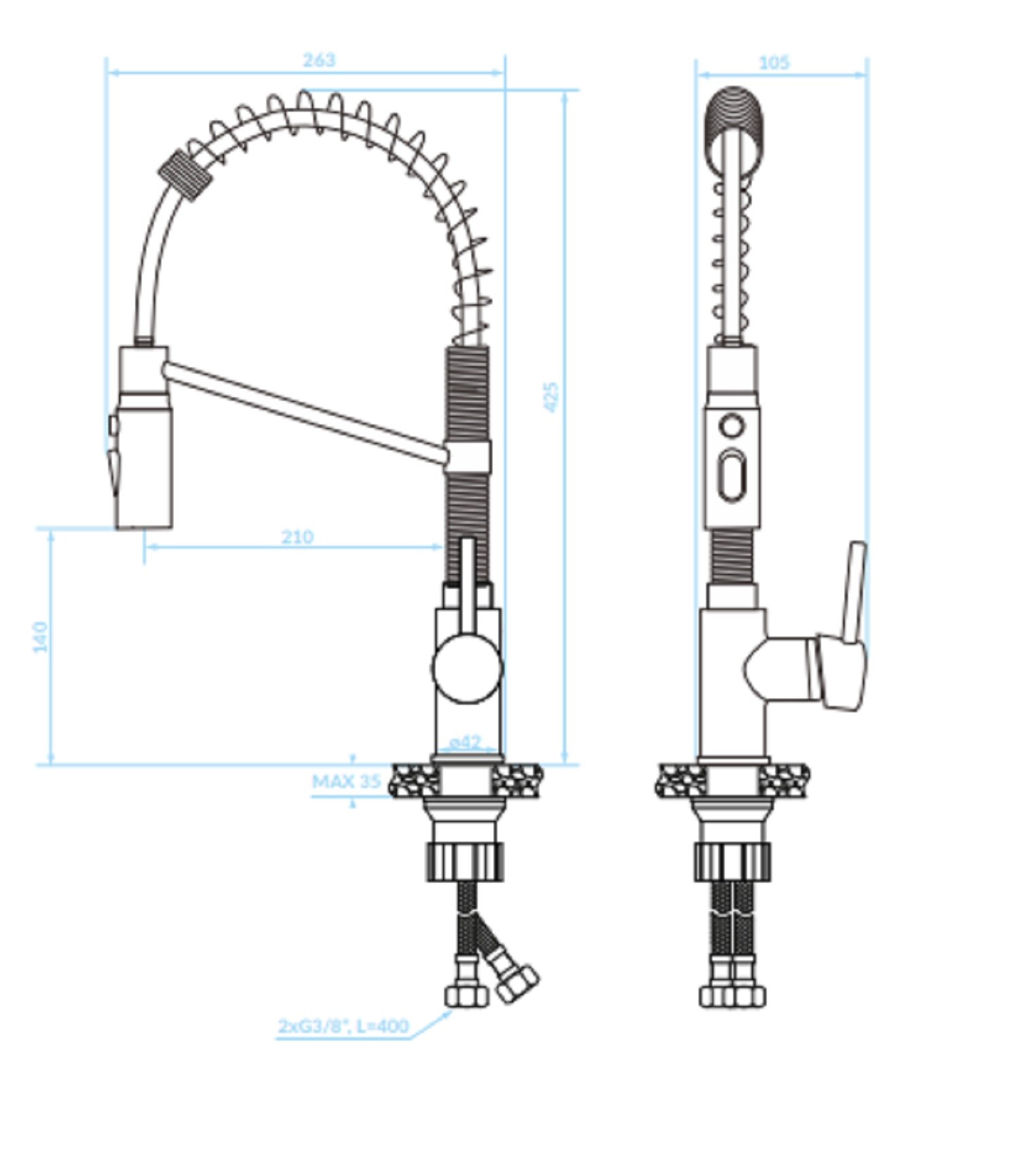 - zasięg wylewki: 210mm