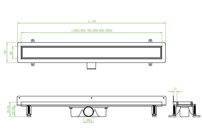 Złoty odpływ liniowy Laveo Basso - wymiary