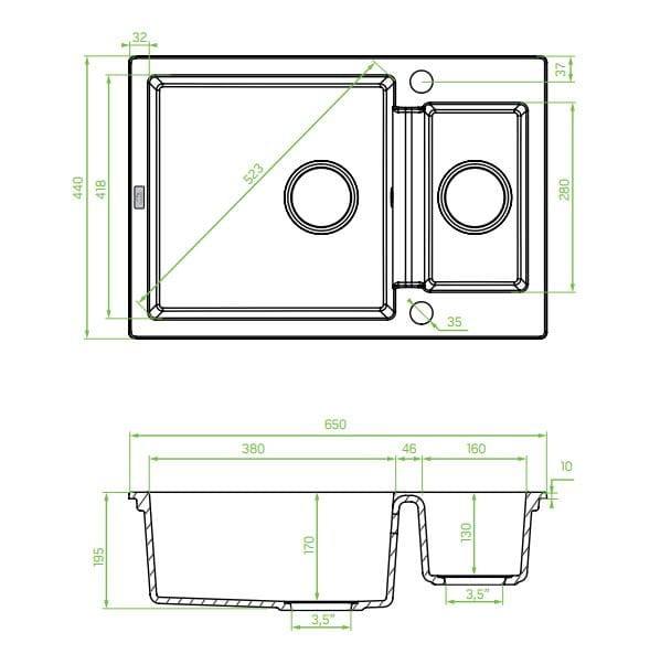 Zlewozmywak z baterią Laveo Celia SJCA730T- wymiary: