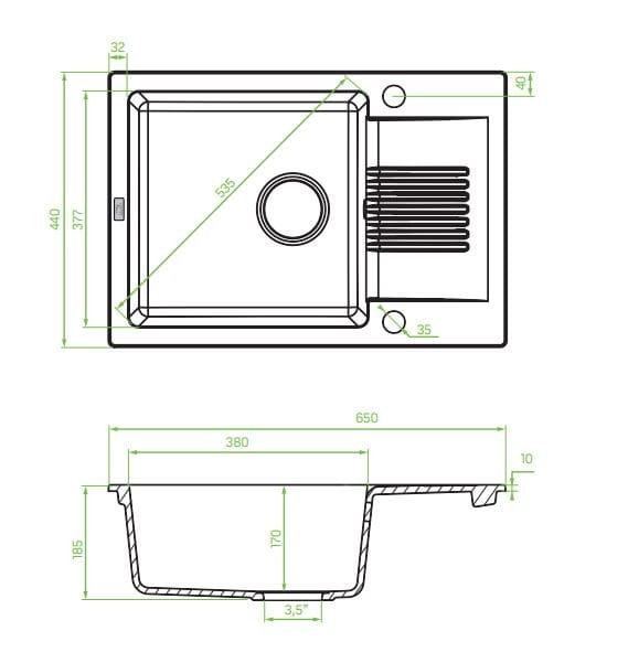 Zlewozmywak Laveo Celia 650x440mm kolor czarny SBC_713T - cechy produktu: