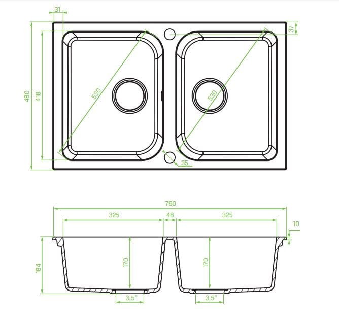 Zlewozmywak Laveo Celia 760x480mm, kolor czarny SBC_720T - cechy produktu: