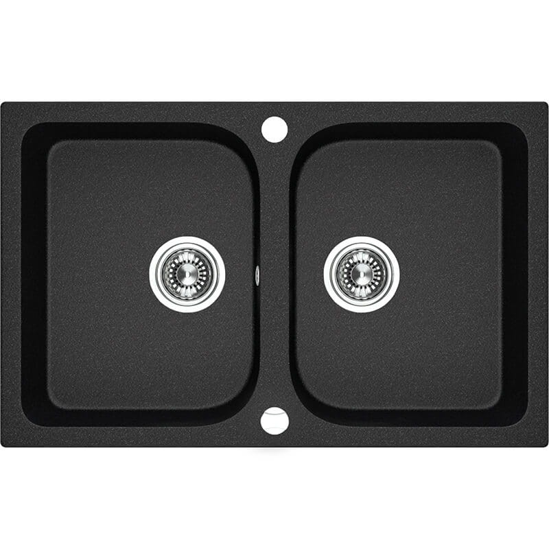 Laveo Celia zlewozmywak granitowy 2 komory bez ociekacza 760x480mm, kolor czarny SBC_720T
