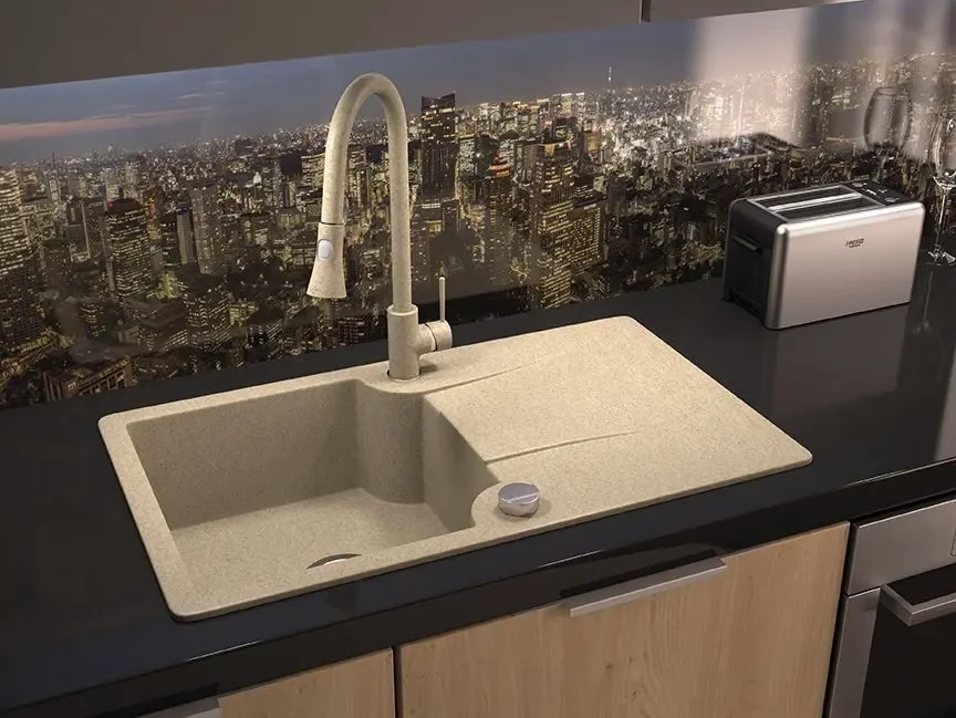 Laveo Daru bateria kuchenna z wyciąganą wylewką, kolor beż BLD_469D