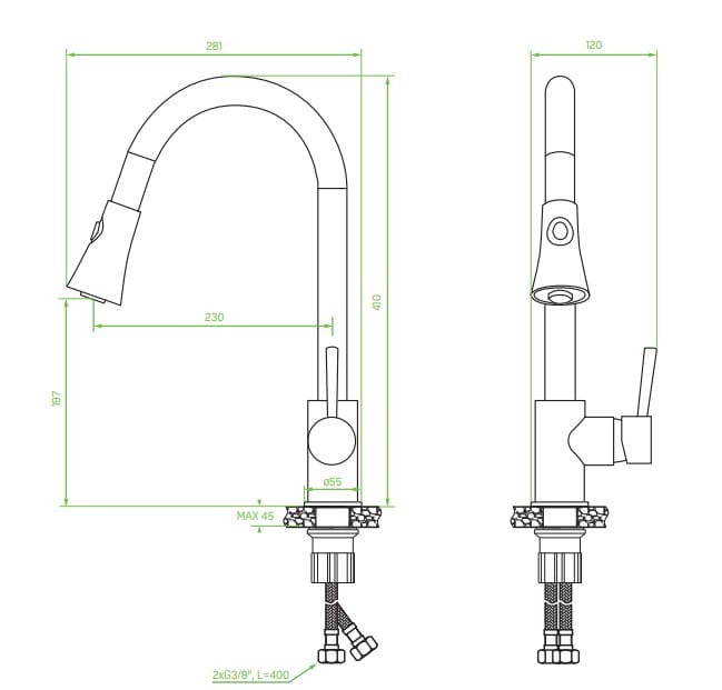 - wylewka: obrotowa/wyciągana