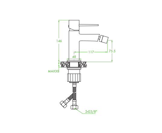 Bateria bidetowa stojąca Laveo Pola chrom - wymiary