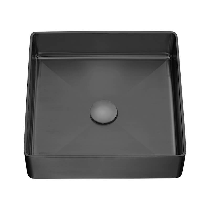 Laveo Pola umywalka nablatowa 36x36 cm, stalowa z korkiem klik - klak, czarny VUP_722S