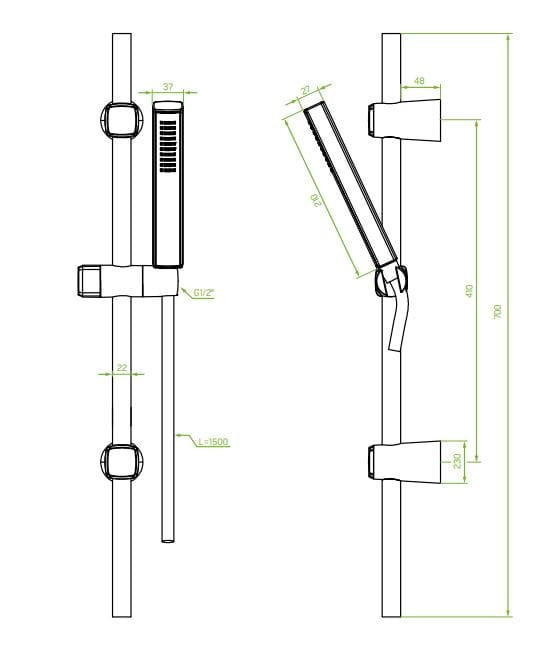 - drążek prysznicowy L-700mm