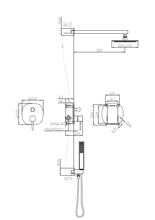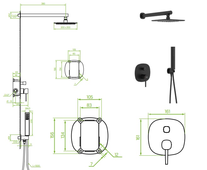 Podtynkowy czarny zestaw natryskowy Laveo Pola BAP_701P - wymiary