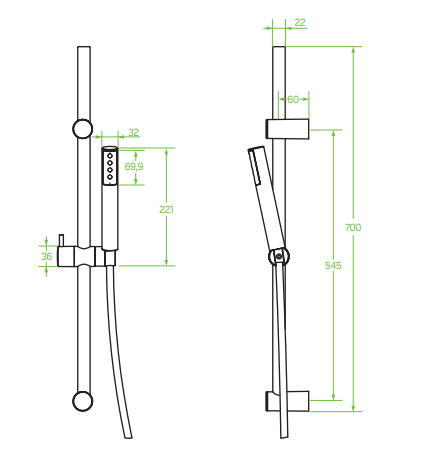 Laveo Pretto Zestaw natryskowy na drążku, czarny, NLP_71A2