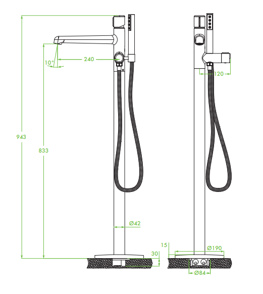 Bateria wolnostojąca Laveo Pretto kolor chrom BAO_011S - wymiary