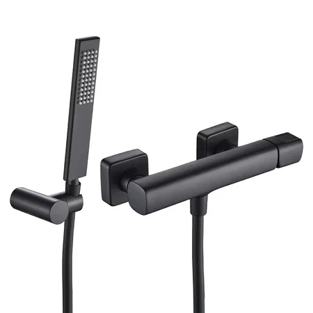 Laveo Tores bateria prysznicowa ścienna z zestawem natryskowym, kolor czarny mat BVT_741D
