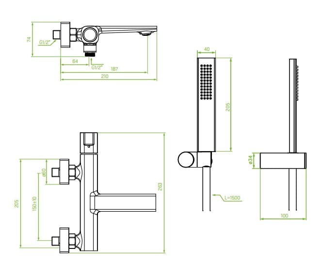 - wąż prysznicowy: 1,5m z systemem antyskręt,