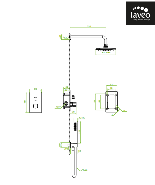 Podtynkowy złoty zestaw natryskowy Laveo Tores BVT 001P - wymiary: