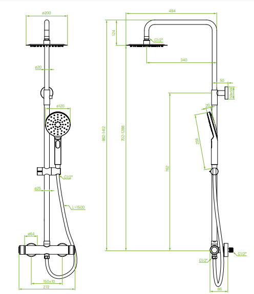 - słuchawka z 3 rodzajami strumienia: Deszczowy, Mieszany, Mgiełka,