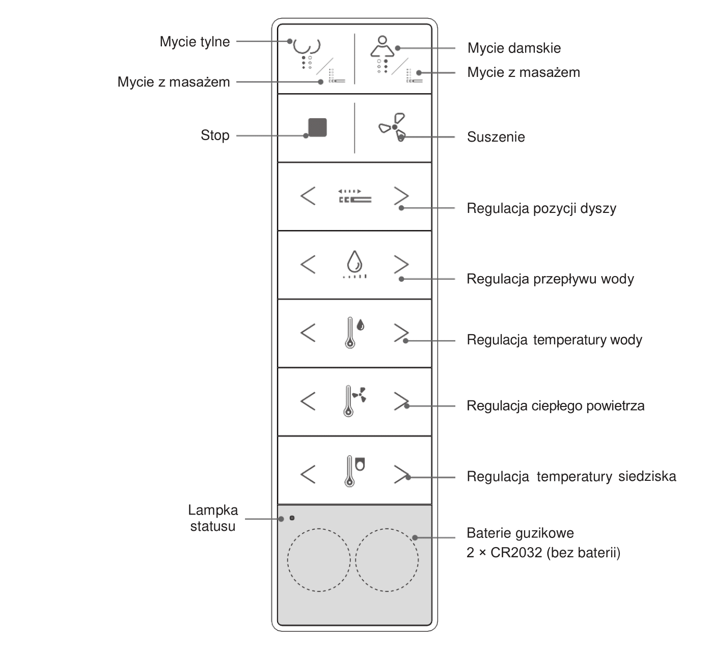 Mycie z tyłu - Strumień ciepłej wody pochodzi z tyłu. Po dwukrotnym wybraniu tej funkcji włączamy opcję przesuwania góra/dół.