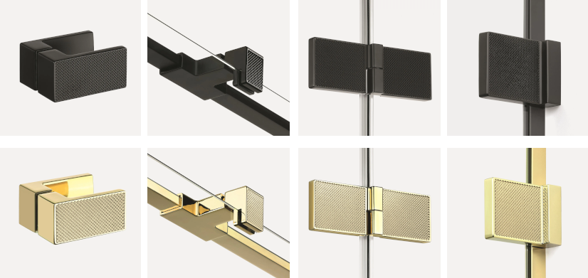 New Trendy Avexa XR to minimalizm i dbałość o najmniejszy szczegół - kabina prysznicowa z luksusowymi uchwytami, stylowym wspornikiem i uchwytami. New Trendy Avexa XR Gold Shine to detale w strukturze radełkowanej w kolorze złotego połysku, a New Trendy Avexa XR Black to dodatki w wykończeniu czarny-mat.
