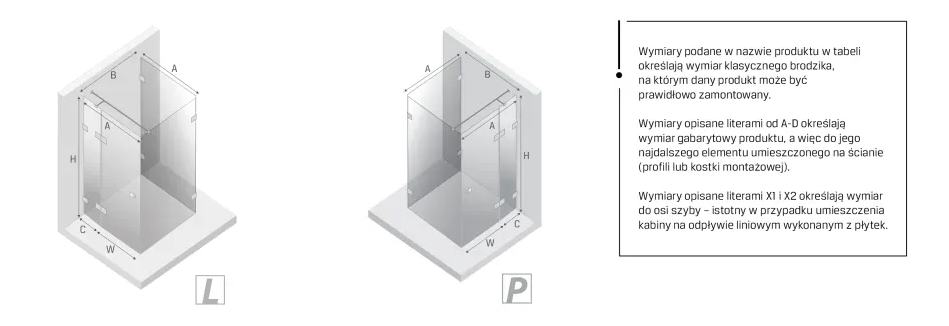 - kabiny: pięciokątne, kwadratowe, prostokątne, półokrągłe, a także walk-in,