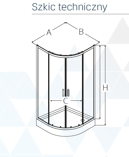 Kabina półokrągła z brodzikiem 90x90 cm- wymiary: