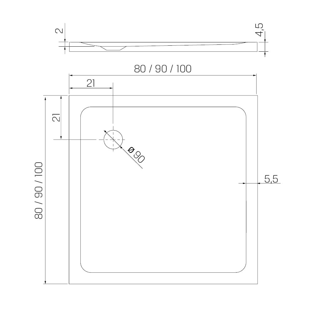 - typ produktu: brodzik kwadratowy,