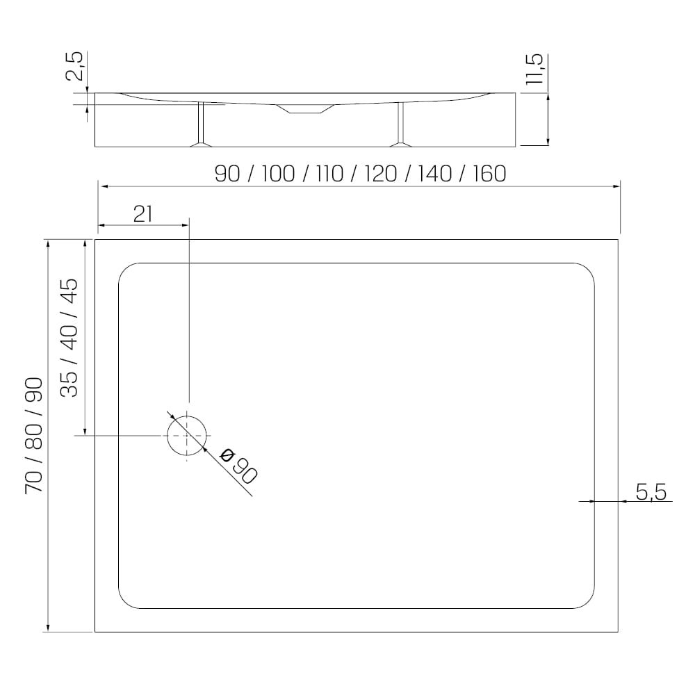 Kolekcja Mild Stone z łatwością dopasuje się do typu kabiny prysznicowej; dostępne są brodziki półokrągłe, brodziki kwadratowe, brodziki pięciokątne oraz brodziki prostokątne. Dodatkowo, każdy model Mild Stone znajdziemy w wersji posadzkowej (niski brodzik) oraz standardowej wysokości (wysokość 11,5 cm), która pozwoli na swobodny montaż syfonu pod brodzikiem.