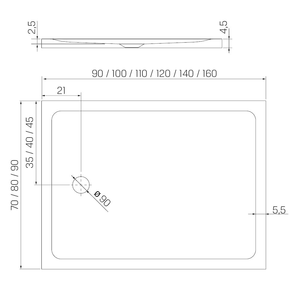 - typ produktu: brodzik prostokątny,