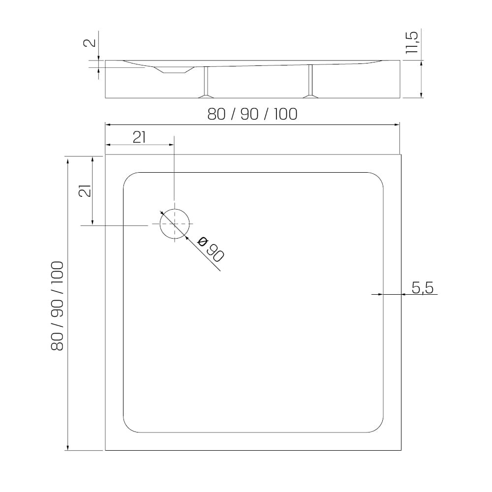 New Trendy Mild brodzik kwadratowy 80x80x11,5cm, akrylowy, kolor biały B-0604