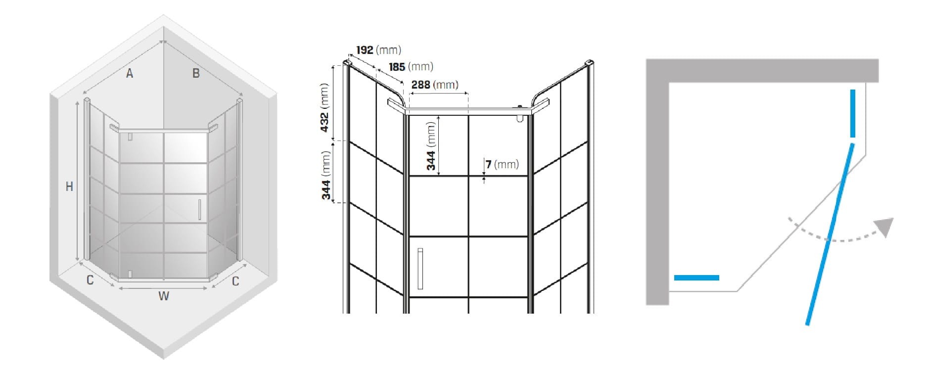 Niewielka, lecz wyrazista kolekcja kabin prysznicowych z czarnymi okuciami. Kabina New Komfort Black posiada szkło 6 lub 8 mm oraz 3 letnią gwarancję. W ramach kolekcji New Komfort Black producent oferuję kabiny półokrągłe, pięciokątne oraz półokrągłe asymetryczne. Z pewnością ciekawą propozycją jest kabina pięciokątna z kratą. Wzór naniesiony na szybę farbą ceramiczną podkreśla jej wyjątkowość i loftowy styl. Każda z kabin posiada szkło hartowane pokryte powłoką Active Shield ułatwiającą czyszczenie. New Komfort Black to linia występująca jedynie z drzwiami uchylnymi.