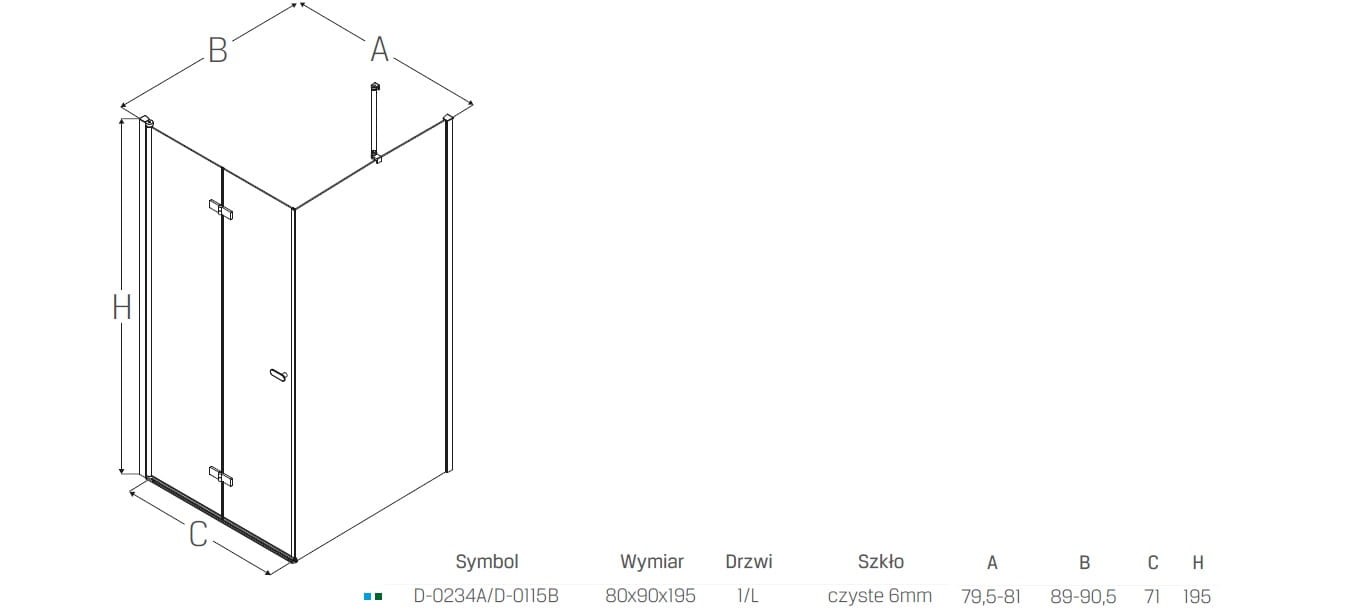 - Ścianka: 89-90,5 cm ( zakres regulacji ) - Drzwi składane do wewnątrz i zewnątrz,
