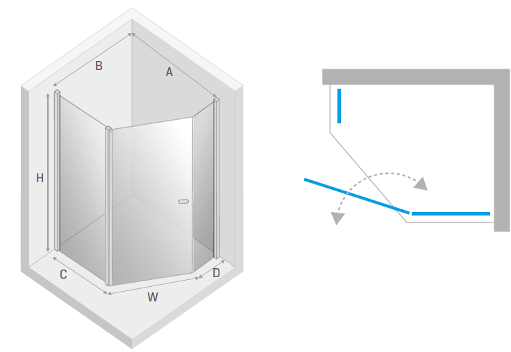 Czarna pięciokątna kabina asymetryczna 100x80 K-0614 - wymiary