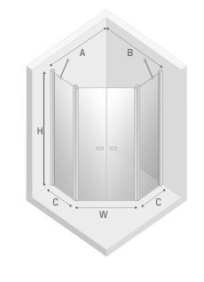 Kabina pięciokątna 90x90x195, drzwi podwójne profile chrom K-0610 New Trendy New Soleo- wymiary