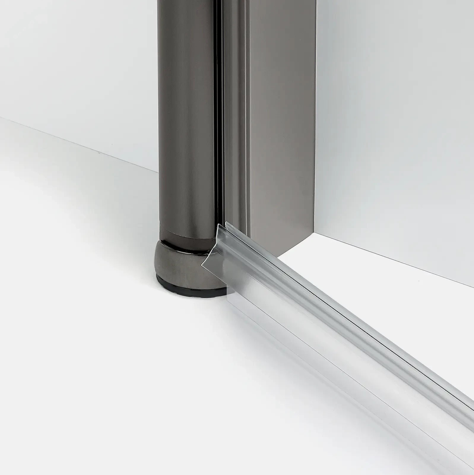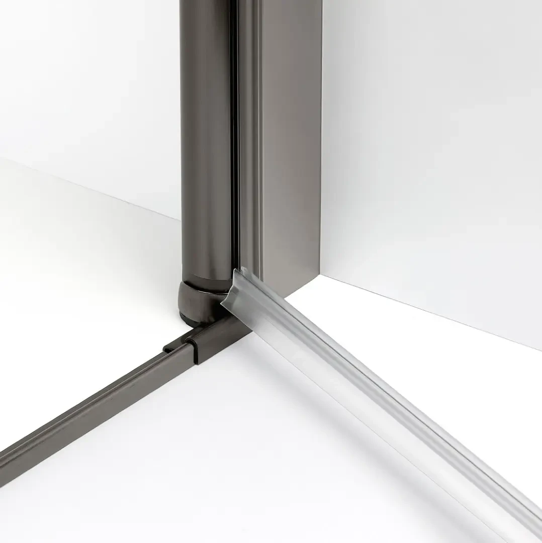 Kabina New Trendy New Soleo wyposażone jest w specjalny metalowy zawias z funkcją unoszenia oraz uszczelkę, która znajduje się na ich spodzie. Uszczelka dzięki temu nie ociera się o podłoże, dzięki czemu wydłuża to jej trwałość. Zawiasy są łatwe w utrzymaniu w czystości, ponieważ są zlicowane z powierzchnią szkła. Kabina New Soleo to produkt, który jest trwały i stabilny - zapewniają to wysokiej jakości wsporniki, które wykonane są w elegancki sposób i świetnie komponują się z taflą szkła kabiny. Detale kabiny uzupełnia uchwyt do otwierania drzwi - delikatnie zaokrąglony i uniwersalny. W komplecie z kabiną znajduje się listwa progowa, która może, ale nie musi zostać zamontowana.