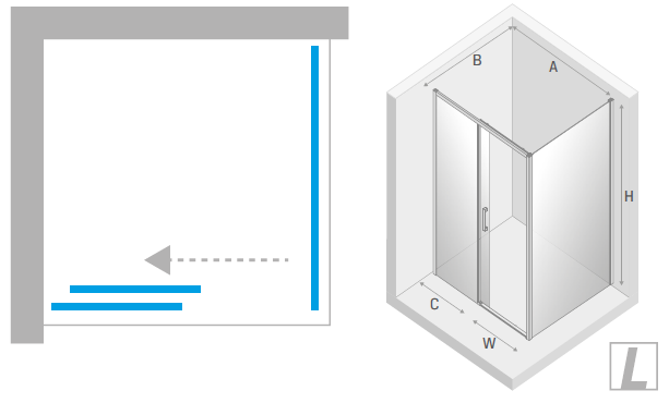 Kabina prostokątna przesuwna profil chrom New Trendy Prime - wymiary