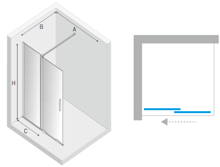 Przesuwny walk-in 130 cm New Trendy Smart Light Gold- wymiary