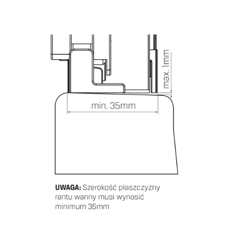 - szerokość płaszczyzny rantu wanny musi wynosić minimum 35mm