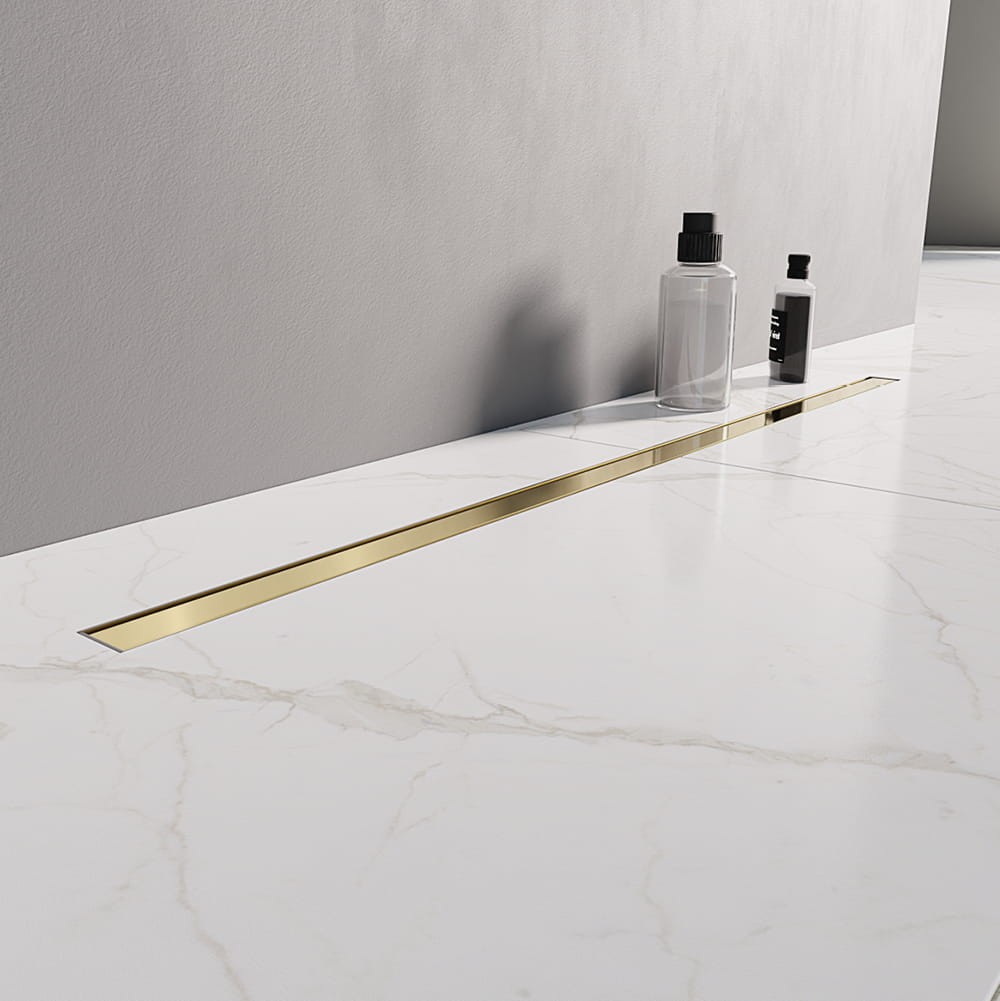 New Trendy Visio Slim Gold odpływ liniowy 90 cm niski ruszt złoty polerowany OL-0074