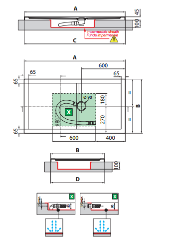 - średnica odpływu: 9 cm,