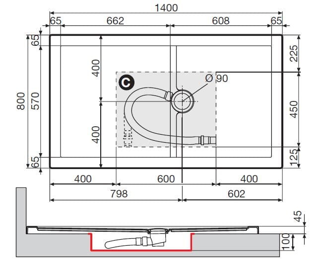 - średnica odpływu: 9 cm,