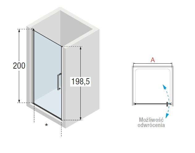 - wysokość drzwi 198,5 cm (wysokość z profilem: 200 cm)