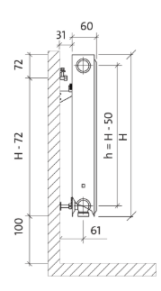 - typ produktu: grzejnik pokojowy zasilany od dołu,