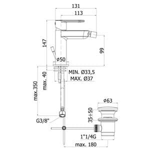 - zasięg wylewki: 11,3cm