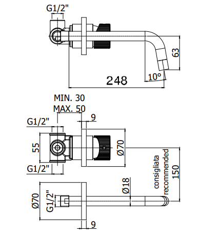 Kolekcja dostępna jest w wersjach podtynkowych i natynkowych. Baterie Paffoni Jo przeznaczone do montażu podtynkowe wyposażone zostały w komplecie w element podtynkowy.
