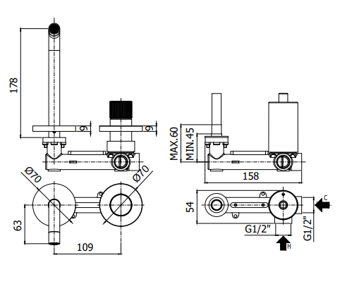 Bateria umywalkowa Paffoni Jo podtynkowa (zintegrowana) 17,8 cm, chrom, JO105CR70